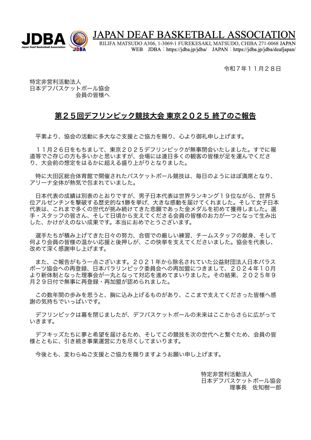 2025年11月29日 / 最終更新日時 : 2025年11月29日 JDBA お知らせ 第25回デフリンピック競技大会東京2025終了のご報告▼画像をクリックすると、PDFページが開き、メンバー表・スコアシート・YouTube配信ページをご覧いただけます。 7dd2f759dec21c76b9507b98d730a208 8583a9adf0fccb811dc45961a1d5aa98FacebookXBlueskyCopy